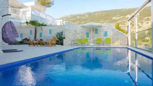 İslamlar köyü Korunaklı Villa, Kalkan Balayı villası, Kapalı Havuzlu, Isıtmalı havuzlu, Balayı çiftlerine uygun, Doğa manzaralı, Kalkan Kiralık Lüks Villa, İslamlar köyü Kiralık Villa, İslamlar tesettürlü Muhafazakar Kiralık Balayı Villası.