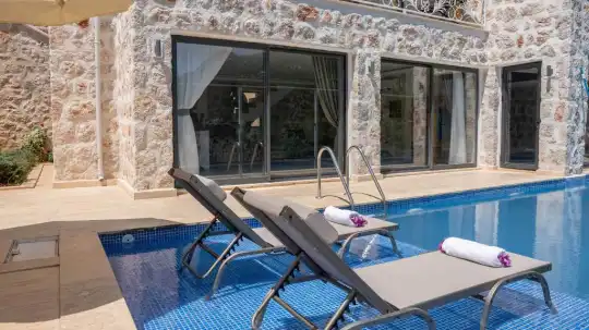 İslamlar Kiralık Balayı Villamızın Özel Yüzme Havuzu korunaklı olup, dışarıdan gözükmemektedir ve bu sebeple dolayı Villa Narin 4 muhafazakar villa tatili isteyen aile ve balayı çiftlerimiz için oldukça ideal bir İslamlar Jakuzili Kiralık Helal Villa seçeneklerimizden en çok tercih edilen villalarımızdan bir tanesi olup Kalkan merkeze ve denize 15 – 20 dakika sürüş mesafesinde olması için misafirlerimiz tarafından tercih edilen Kalkan Muhafazakar Korunaklı Villalarımızdandır.