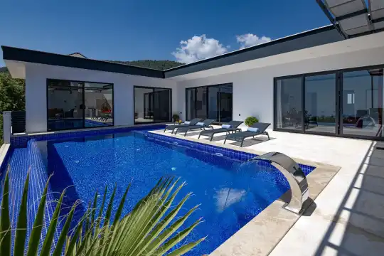 Antalya Kalkan’ın İslamlar köyünde konumlanmış olan Kiralık Villamız Villa Nur 1 deniz manzaralı, jakuzili, iç havuzlu, modern iç ve dış ürünler, özel havuz, havuz şelale,sauna,mangal, otopark ve muhafazakar özelliği ile tercih edebileceğiniz güzel villalarımızdan bir tanesidir.