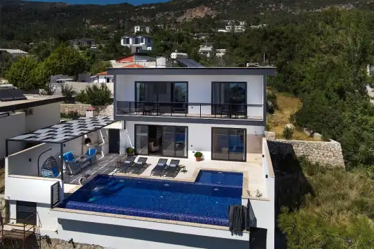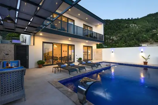 Kalkan İslamlar Bölgesinde konumlanmış olan 6 kişilik, 3 yatak odalı Villa Nur 2, Huzur dolu doğada bulunan uzaktan deniz manzarasına sahip, özenle dekore edilmiş modernli ve lüks dizayn, odalar geniş ve ferah, süit odamızda özel geniş jakuzisi, havuz terasında özel yüzme havuzlu, kobra şelalesi, çocuk havuzu, mangal, oturma grubu vb gibi tatil hayalinizi kusursuz bir şekilde hayatınıza anlam katacağınızdan emin olabilirsiniz.