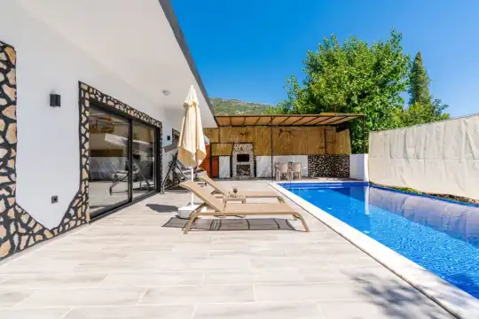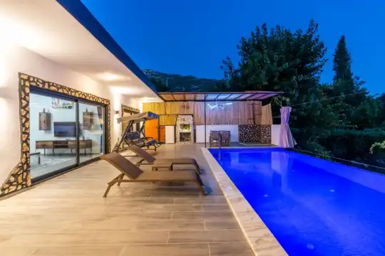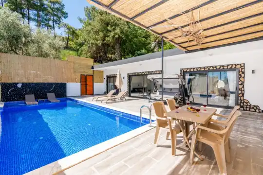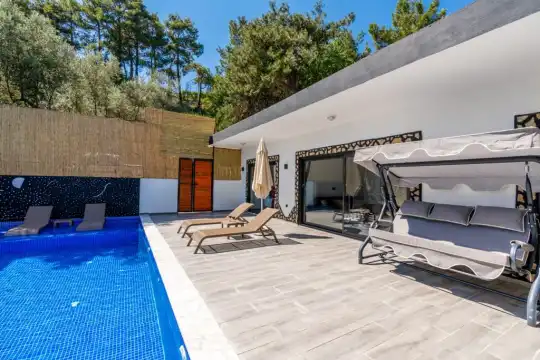 İslamlar köyü Korunaklı Villa, Kalkan Balayı villası, Balayı çiftlerine uygun, Doğa manzaralı, Kalkan Kiralık Lüks Villa, Sığ havuzlu villa, İslamlar tesettürlü Muhafazakar Kiralık Balayı Villası.