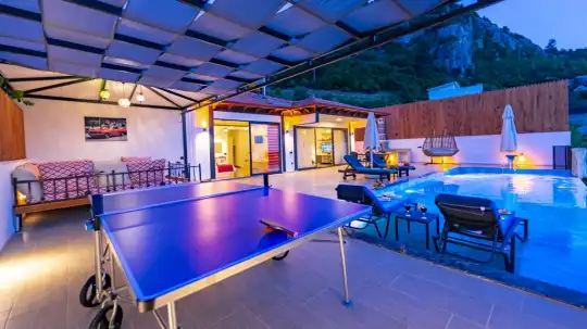 Villa Paradise Kalkan eşsiz bir konumda, muhteşem dağ manzaralı huzurlu ortama sahiptir. Havuz terasımızda ve bahçemizde şezlong, güneşlenme şemsiyesi, barbekü, pergole,salıncak,masa tenisi, yemek masası ve sandalyeleri vardır.