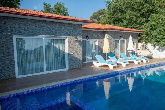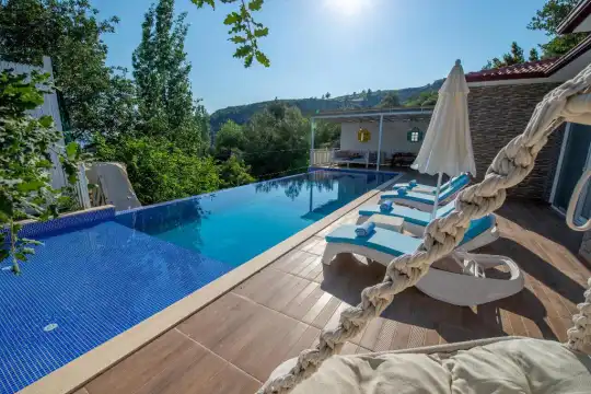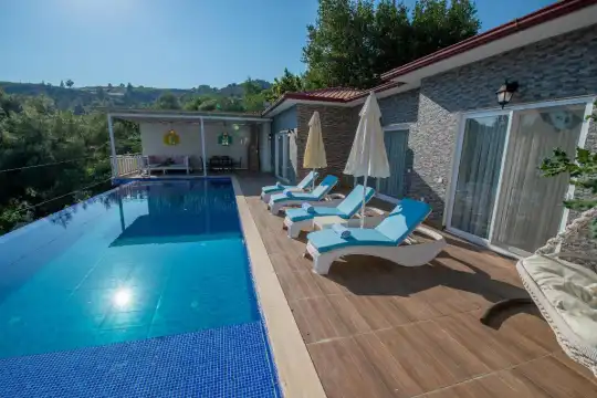 İslamlar köyü Korunaklı Villa, Kalkan Balayı villası, Balayı çiftlerine uygun, Doğa manzaralı, Kalkan Kiralık Lüks Villa, çocuk havuzlu villa, İslamlar tesettürlü Muhafazakar Kiralık Balayı Villası.