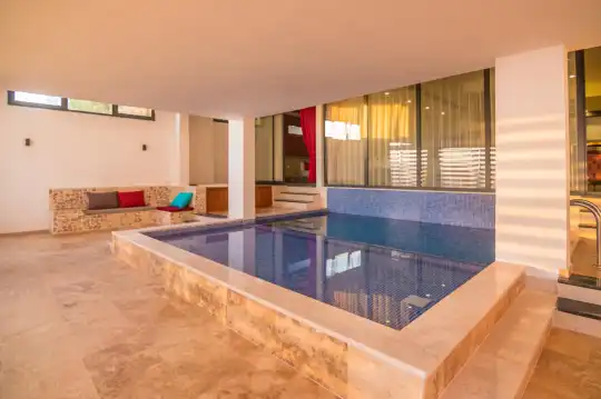 Villamızın Kapalı yüzme havuzu boyutları 6 m X 3 m, Derinlik: 1.30 m'dir.