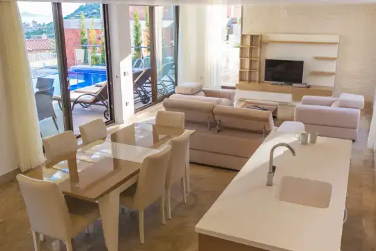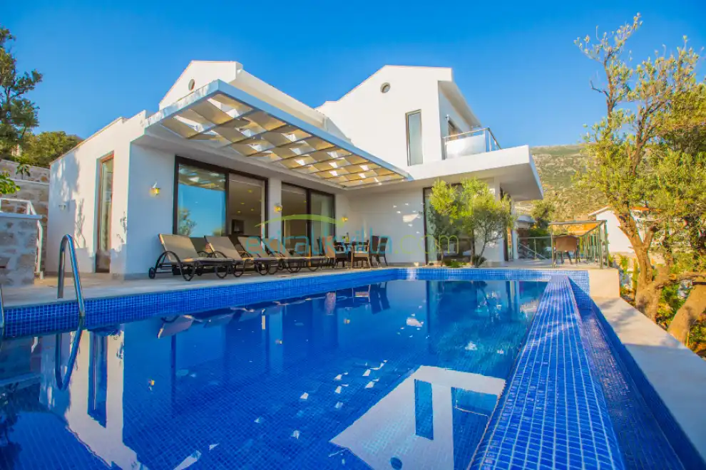 Kalkan ve Deniz Manzaralı, Kaliteli ve lüks diyazn, Sakin bir konum, Göz alıcı villa, Masa tenisli villa, Limana ve merkeze yürüyüş mesafesi, Kalkan kiralık villa.
