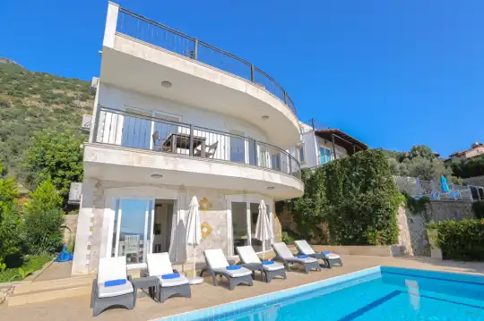 Kalkan Kızıltaş mevkisinde bulunan lüks tatil evimiz 3 yatak odalı, 6 kişi konaklama kapasitesine sahip, özel yüzme havuzu, geniş havuz terası, havuz terasında taştan barbekü ve kamelya eşliğinde yemek masası ile sandalyeleri, güneşlenme şemsiyeleri ve şezlonglar, şirin Amerikan tipi mutfak, her yatak odalarından muhteşem deniz manzarası, geniş ve panoramik deniz manzaralı teras katı, oda içinde jakuzisi gibi gibi saymakla bitiremeyeceğimiz özelliklere sahip kalkan lüks ve modern villalarımızdandır.