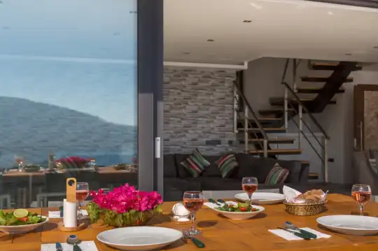 Kalkan yazlık kiralık villamız 8 kişi konaklama kapasitesine sahiptir.