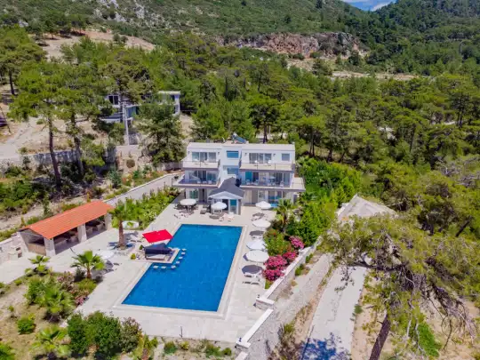 Panoramik Patara denizi manzaralı, Kalkan muhafazakar kiralık villa, Lüks iç ve dış dekorasyon, Sakin bir konumda balayı tatili, Oda içi özel ısıtmalı jakuzili yüzme havuzu, Kiralık Villa, İslamlar korunaklı balayı villası, Doğa içinde islami kurallara uygun müstakil kiralık villa, İslamlar Günlük Kiralık Balayı Villası.