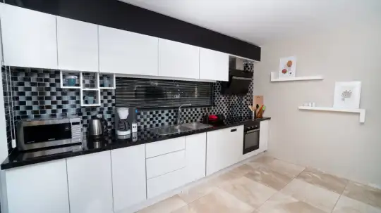 Villa Sole Sdyma, Tam donanımlı modern Amerikan mutfak içerisinde buzdolabı, bulaşık makinesi, ankastre fırın, ocak, mikrodalga fırın, kettle, filtre kahve makinesi, tost makinesi, yemek masası, 6 kişilik yemek, çatal ve bıçak takımları, tencere ve tava takımları ve bardaklar bulunmaktadır. Ayrıca tatil esnasında eksik bir ürün olursa bize söylediğiniz durumda hemen tedarik ediyoruz sizin için.
