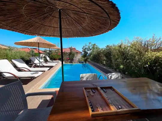 Villa Sole Tlos Kalkan geniş bahçesi ve havuz terası ile siz misafirlerimizin rahatlığı için havuz terasımızda ve bahçemizde salıncak, şezlong, güneşlenme şemsiyesi, barbekü, yemek masası ve sandalyeleri bulunmaktadır.
