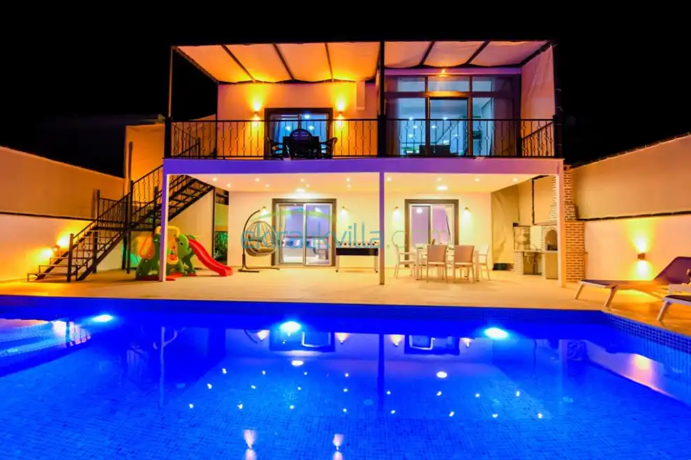 Antalya günlük kiralık villamızda siz değerli misafirlerimiz için her şey en ince ayrıntısına kadar düşünülmüştür. Kalkan yazlık kiralık villamız da havuz terasında langırt, barkekü ve yemek masası, çocuklar için düşülmüş olan çocuk parkı, havuz içerisinde yatay havuzu, modern ve lüks eşyalar ile dekore edilmiş olup iç ve dış dizaynı özenle yapılmıştır ve sizlerin hizmetine sunulmuştur.