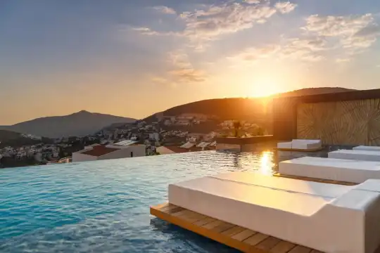 Villa Supernova Kalkan geniş bahçesi ve havuz terası ile siz misafirlerimizin rahatlığı için havuz terasımızda ve bahçemizde salıncak, şezlong, barbekü, yemek masası ve sandalyeleri ve oturma grubu bulunmaktadır.